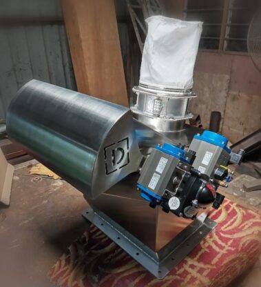 It is a customized equipment, designed and built for a ingredient company based on customer special request. Firstly, first gate will open while second gate remain close, to allow operator to putting in a cocoa block. When done locate the cocoa block, operator will close the first gate by pressing a foot switch. There is a sensor to detect existence of cocoa block. Then it will only open the second gate to allow cocoa block to feed into block grinder.