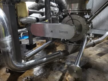 Partnering with our rotary valve supplier from China, we supplied a easy-clean stainless steel rotary valve to our customer who handle high capacity sugar powder. This rotary valve used for blowing pneumatic conveying system to isolate the pressure of upstream and downstream. The conveying capacity of sugar as high as 16 TPH at 0.9 bars. It did a very good job in pressure isolation by very precise and tight housing-rotor clearance as small as 100 micron.