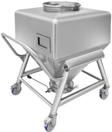 Bin (also known as Intermediate Bulk Container, IBC) and Bin system are for powder handling applications to store, transfer and mix for close containment. They are very easy to transfer and clean. The volume of IBC is from 50 liters up to 3500 liters.