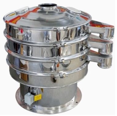 Rotary vibration screen is a high-precision fine powder screening machine, with low noise and high efficiency. It takes 3-5 minutes to quickly change the net. The rotary screen is made of an upright motor as the excitation source. The upper and lower ends of the motor are equipped with eccentric hammers. The rotary motion of the motor is transformed into horizontal, vertical and inclined tridimensionality motion, which is then transmitted to the screen surface. By adjusting the phase Angle of the upper and lower ends, the movement track of materials on the screen surface can be changed. Materials can be fine screening, probability screening, etc.